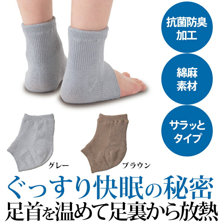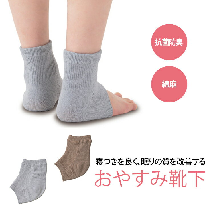 睡眠 グッズ 寝つきをよくする おやすみ靴下 眠+(ミンプラス)おやすみ 綿麻 足首 サポーター メンズ(男性用)抗菌防臭加工/グレー/ブラウン/フリーサイズ/ゆったりめ/足首を温める/レッグウォーマー/くつ下/冷え性/寒がり